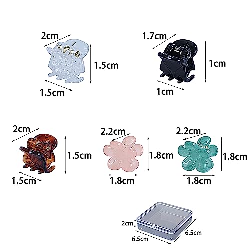 50 fermagli per capelli da donna, 1 scatola di immagazzinaggio, mini clip per artigli in plastica, piccole clip per capelli antiscivolo multicolore adatte per frange, trecce