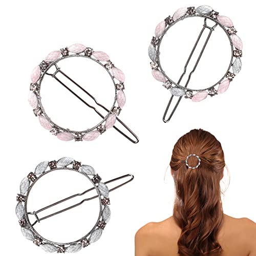 【Alta qualità】 I fermagli per capelli sono realizzati in lega metallica di alta qualità, resina e strass. Un semplice corpo rotondo con un anello di strass e perline colorate sul bordo, la superficie è decorata con tecniche di taglio geometrico e poi lucidata a mano. Come una ghirlanda di diamanti, aggiunge glamour alla tua pettinatura e mostra la tua eleganza.