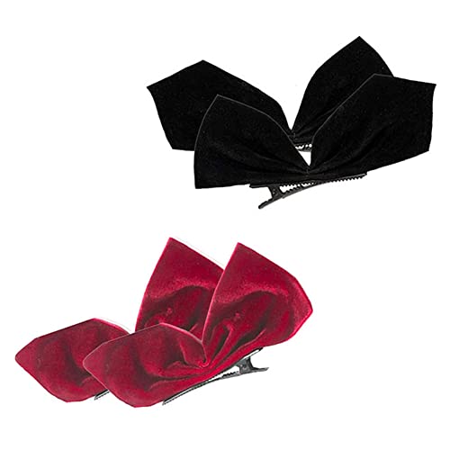 2 paia di fermagli per capelli con fiocco in velluto, con fiocco in tinta unita, per Natale, compleanno, tutti i giorni (rosso/nero)