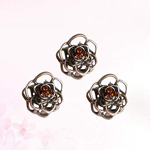 12 mini fermagli per capelli a forma di rosa, in rame vintage, con piccoli strass