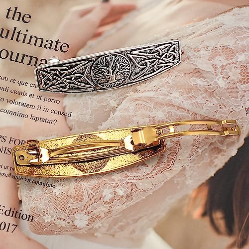 2 Pz Fermagli per Capelli Vintage, Fermagli per Capelli Nodo Celtico in Metallo, Accessori per Capelli con Drago e Albero della Vita, Acconciature per Donne Ragazze Spose, Oro e Argento