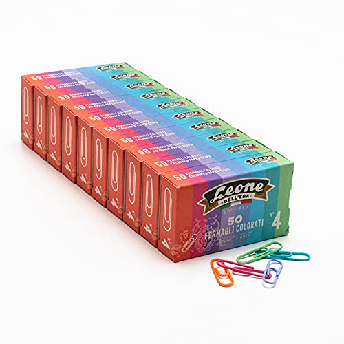 500 Fermagli Colorati Plastificati Leone Dell'Era N. 4 - mm. 32 - Stecca da 10 scatole da 50 pz