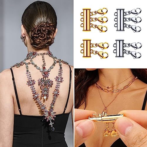 6PCS Fermagli a Doppia Aragosta e Chiusura Collane Multiple Set, Argento Oro Doppia Chiusura Aragosta Extender, Separatore di Collana Magnetico per la Creazione di Gioielli Fai da Te