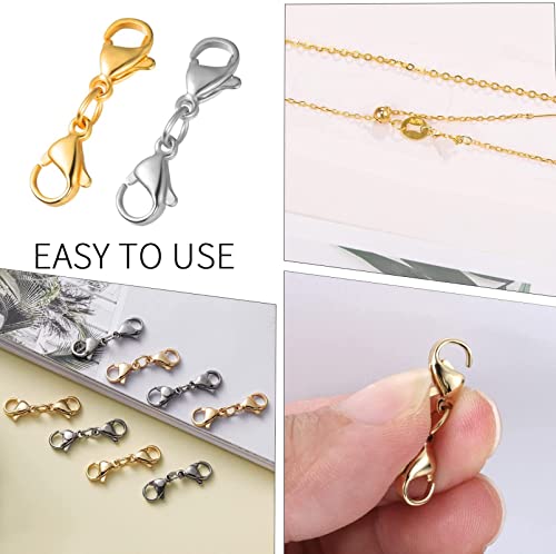 La confezione include: le chiusure a doppia testa includono 8 chiusure a moschettone, ogni catena ha la lunghezza di circa 25 mm, ogni testa a moschettone è di circa 10 mm di lunghezza e 0,6 mm di larghezza, la dimensione corretta può soddisfare le vostre varie esigenze di gioielli.