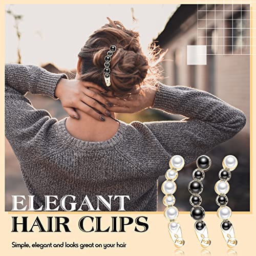 Fermaglio per Capelli a Banana 3 Pezzi Mollette Forcine Clip per Capelli con Perla in Acrilico con Strass Barrette per Capelli Eleganti Bianchi Nerii per Ferma Coda di Cavallo per Donna