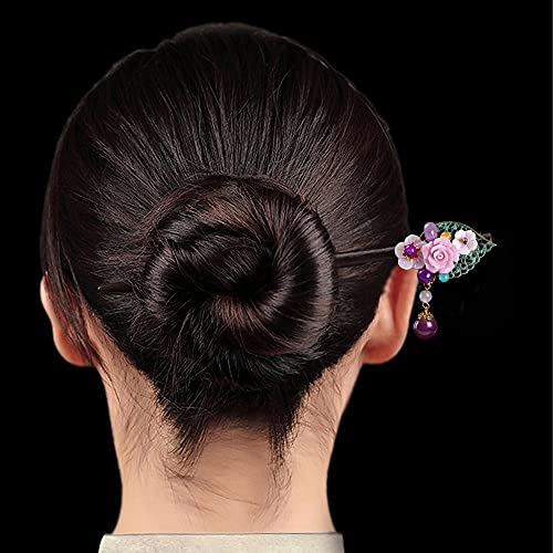 Fermaglio per capelli cinese a forma di fiore, stile vintage, in legno, con nappa, per matrimoni, donne, ragazze, bacchette per capelli Hanfu, (A)