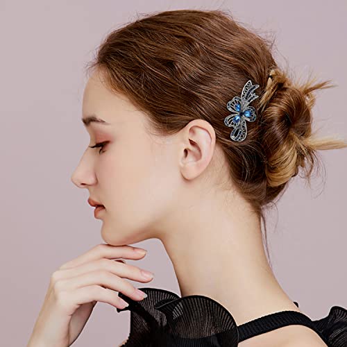 Fermaglio Capelli Donna Bambina Pinze Per Capelli Eleganti Blu Gioiello Mollette Capelli Farfalla Fiori Fermagli Per Capelli Francese Pinza A Molla In Metallo Per Accessori Capelli, 4 Pezzi