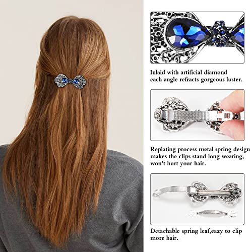 DESIGN ELEGANTE E VINTAGE: Confezione da 4 (dimensioni: 2.76'' x 0.28''), i fermagli per capelli primaverili utilizzano strass blu come decorazione e le decorazioni sulla superficie sono realizzate con tecniche di taglio geometrico e quindi lucidate artificialmente in modo che gli accessori per capelli brillerà come una gemma. Lascia che i nostri fermagli per capelli ti aggiungano fascino.