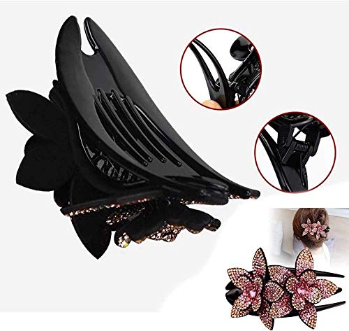 Fermaglio per capelli a doppio fiore con strass,clip flessibile a coda di rondine per capelli da donna con design durevole,Fashion Hair Claw Clips Morsetti Copricapo con strass pettine antiscivolo