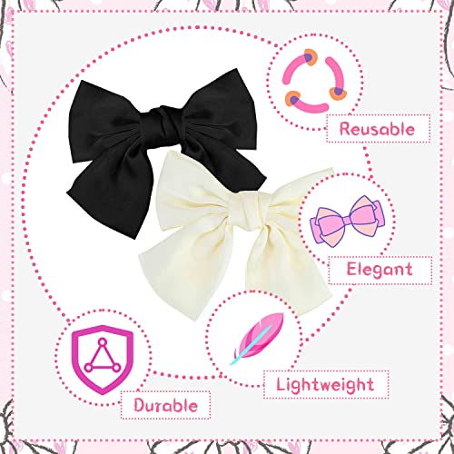 Fermaglio per capelli con fiocco, 2 pezzi Fiocchi per capelli per donna Fermaglio per capelli con fiocco grande Fermagli per capelli alla francese Fermagli per capelli per ragazze (nero + bianco)