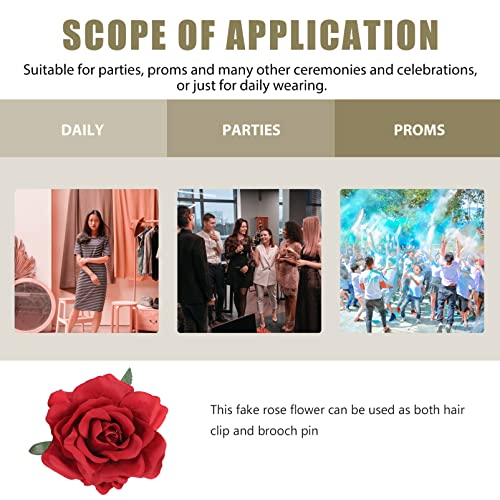 Fermaglio per capelli 2 in 1 a forma di rosa artificiale, grande, a forma di fiore, da donna, per feste (Dull Red)