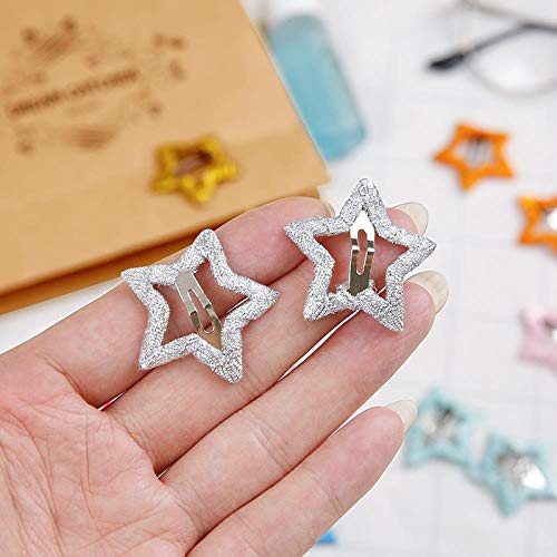 Fermaglio per capelli a forma di stella bambina a cinque punte con clip a forma di fiore, argento 1 paio