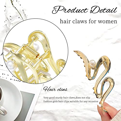 Fermaglio per capelli grandi con perle, in metallo antiscivolo, colore argento e oro, resistente accessorio per capelli per donne e ragazze (2 pezzi)