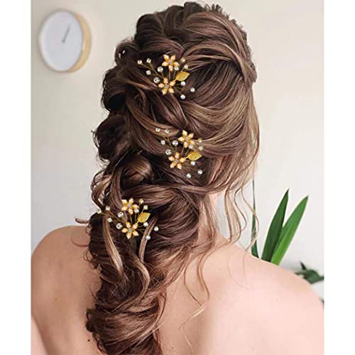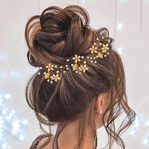 IYOU Fermaglio per capelli da sposa con perle dorate, con strass, accessorio per capelli per donne e ragazze (confezione da 3)