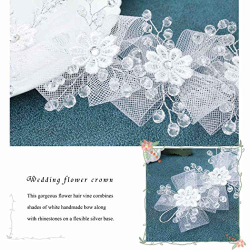 IYOU Fermaglio Fiori per Copricapo a Forma di Principessa Bianco con Perle e Cristalli Accessorio per Capelli da Sposa e Ragazza.