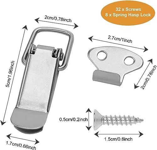 8 Set Fermaglio a Molla Chiusura a Leva 56mm Chiusura a Molla con 32 Viti - Chiusura per Cassa in Acciaio Inossidabile - Chiusura a Scatto per Cassetta Degli Attrezzi Armadietto Scatole - Argento