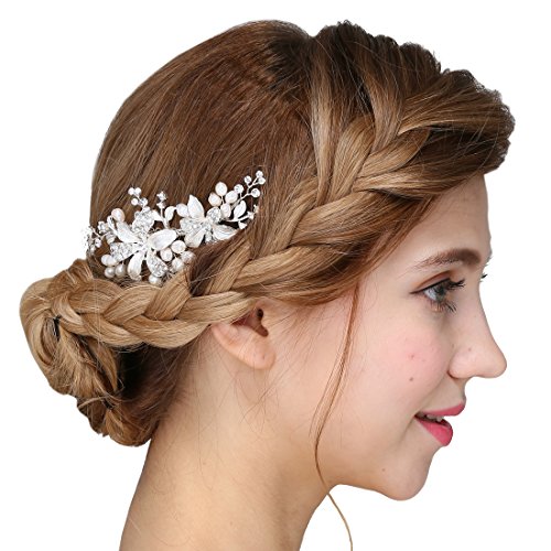 Fermaglio a pettine per capelli, realizzato a mano, accessorio nuziale in stile floreale, colore: argento con perle color panna