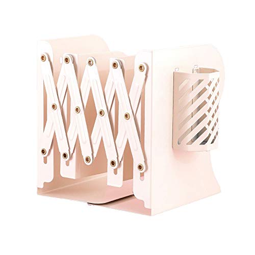 Fermalibri espandibile, in metallo, regolabile, con portapenne, porta riviste, organizer per studenti (beige)