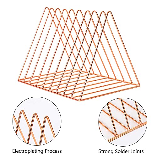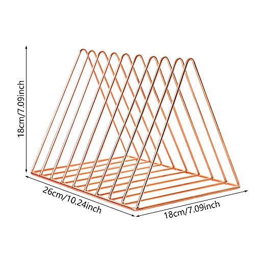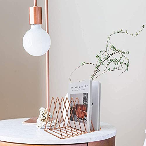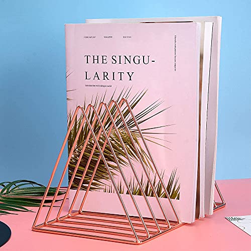 Fermalibri da Scrivania, Portariviste da Tavolo Metallo, Libreria Triangolo, 9 Slot, Forma Triangolare, Saldatura Manuale, per Decorazione, Casa, Libri, Riviste, File, Ufficio (Oro Rosa)
