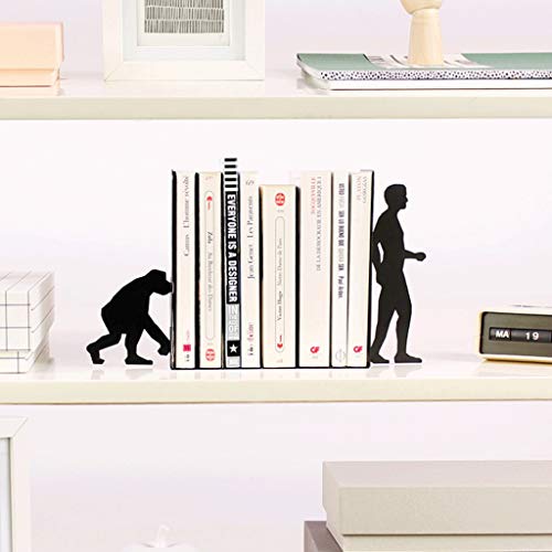 Fermalibri Unico Metallo Creativo Bookends Scimmie Evolution Bookstand Supporto in Ferro Holder Desk Stand for la Scuola di cancelleria e Ufficio Reggilibri Desktop (Color: Black)