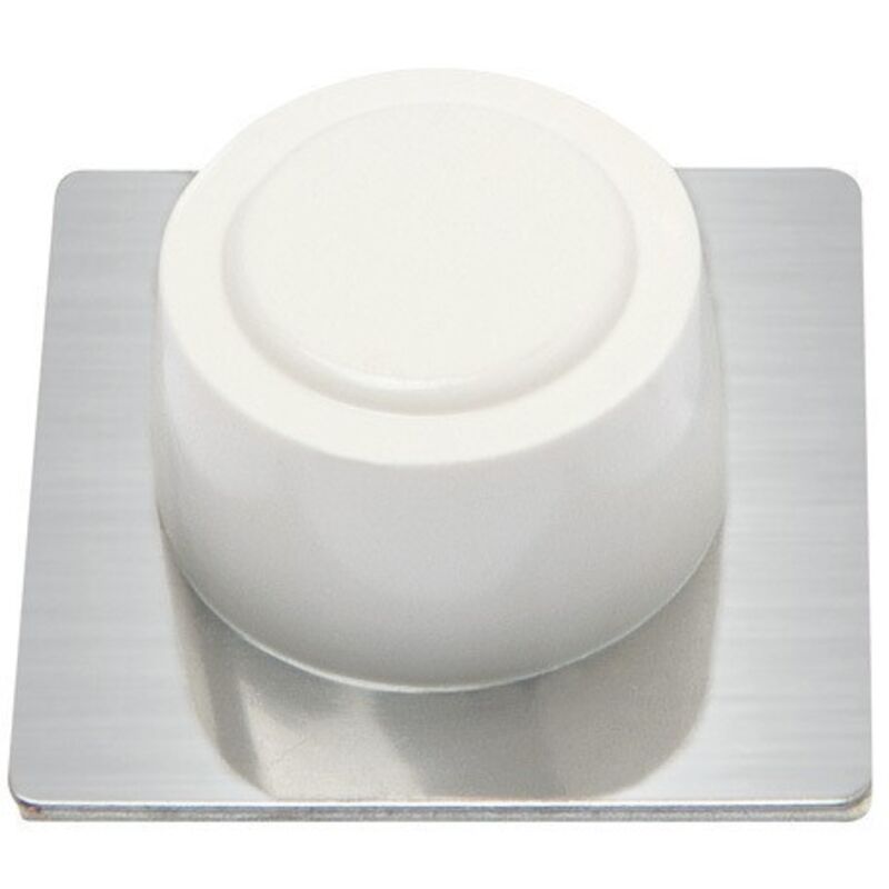 Fermaporta - Base adesiva. - Colore bianco. - Targhetta in metallo.