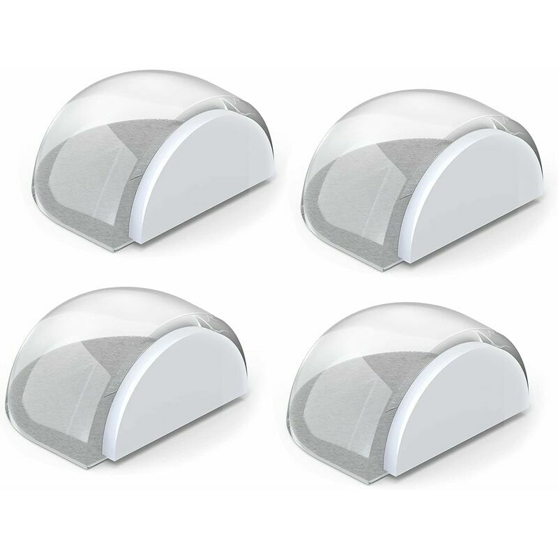 Fermaporta invisibile: molto discreto grazie al tipo di plastica trasparente, a differenza di altri fermaporta spesso ingombranti. Protezione perfetta: i fermaporta da incollare sono la protezione perfetta contro le porte che sbattono e quindi evitano segni sui muri e mobili. Facilità di montaggio: fermaporta autoadesivo senza viti o fori, basta rimuovere la pellicola adesiva trasparente dal fermaporta e incollarla nel punto desiderato. Ampio utilizzo: adatto a tutti i pavimenti lisci, come pietra, piastrelle, vinile, laminato e parquet. Può essere rimosso senza lasciare traccia.,Contenuto della confezione: set di 4 fermaporta inodore e 4 cuscinetti adesivi semicircolari trasparenti aggiuntivi. Dimensioni: 42 x 40 x 25 mm