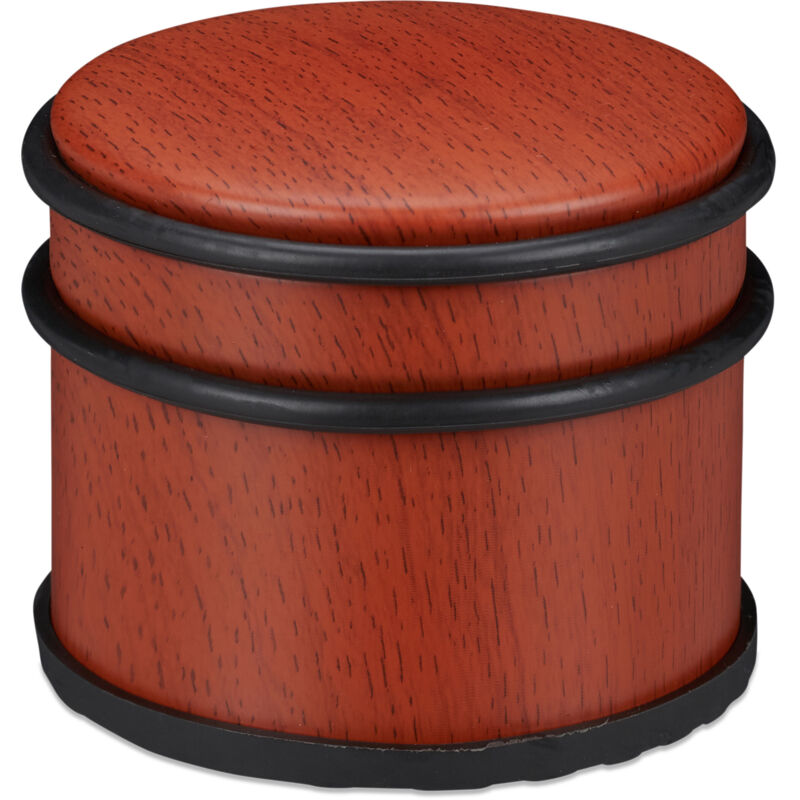 Un fermaporta è un accessorio indispensabile in casa e in ufficio, in quanto fa in modo che porte e porte finestre non si chiudano all'improvviso a causa della corrente. Il peso di questo blocca porte ne garantisce un'ottima tenuta su qualsiasi pavimento. Inoltre il rivestimento in gomma è antiscivolo. Il ferma porte può essere utilizzato su qualsiasi tipo di pavimento, dal laminato al parquet. Inoltre, 3 anelli in gomma fanno in modo che porte e finestre non vengano danneggiate. Fermaporta in dettaglio - Dimensione H x D: 8 x 9,5 cm ca. - Peso: 1,2 kg ca. - Materiale: acciaio, gomma (TPR) - Colore: marrone dai toni rossi dall'aspetto legno- Set da 4 Pratico accessorio blocca porta - Protegge porte, pavimenti e pareti da eventuali urti - Dotato di gommini antiscivolo e antigraffio alla base - Con 3 anelli in gomma rimovibili per non danneggiare porte e finestre - Posizionabile liberamente - per cucina, bagno, corridoio, salotto, ecc. - Impedisce a porte e finestre di chiudersi
