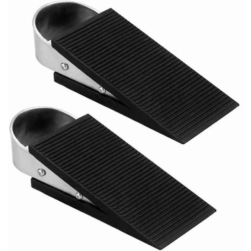 Materiale: la gomma non graffia pavimenti, pareti o porte. Più resistente e di lunga durata. La maniglia in acciaio inossidabile aiuta a prevenire la deformazione del fermo della porta, può aumentare il peso del fermo. Semplifica la ricerca e l'aggancio quando cambi o meno la posizione. Mantieni stabile la porta: i nostri fermaporta a cuneo dotati di un'esclusiva base inclinata e base antiscivolo, forniscono la massima potenza di presa e mantengono saldamente le porte in posizione. Sono abbastanza forti da impedire alle porte di aprirsi. Design intuitivo: la maniglia in acciaio inossidabile consente di tirare facilmente l'angolo della porta sotto la porta. Il design della scanalatura lo rende più stabile ed equilibrato rispetto alle superfici lisce. Facile da usare: basta posizionare l'angolo della porta all'estremità della porta, regolare l'altezza e l'angolazione per raggiungere l'equilibrio. Adatto a tutti i tipi di pavimenti come legno, cemento, piastrelle in ceramica, ecc.