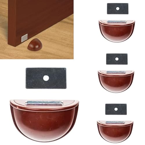 Fermaporta Magnetico, 4 Pezzi Ferma Porta Marrone, in Robusta plastica con contropiastra per Bloccare Porte Pavimento, impedire Che Le Porte Si Scontrino con Le Pareti, 32x48x25 mm