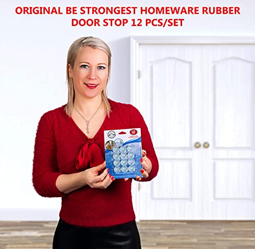 Fermaporta a Pavimento Adesivo Da Parete - pacco da 12 - in gomma, Protettivi - Trasparente (12)