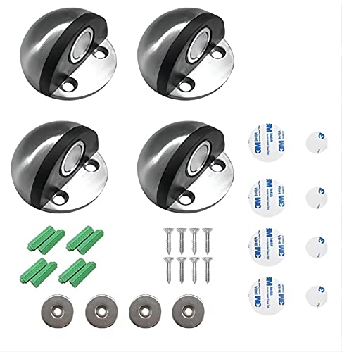 4 fermaporta per pavimento autoadesivo, viti per porte in vetro, porte del balcone, buffer da parete per 2 metodi di installazione, fermaporta da pavimento con viti e magnete (argento)