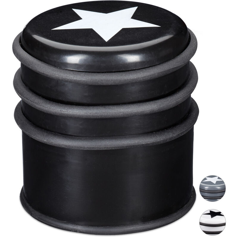 Il fermaporte in plastica è l'accessorio ideale per la vostra casa: impedisce a porte e finestre di chiudersi bruscamente in caso di forti correnti di vento. Inoltre il materiale pesante e massiccio lo rende estremamente stabile. Il rivestimento in gomma antiscivolo fa in modo che mantenga una tenuta salda, mentre i 3 anelli in gomma rimovibili proteggono mobili, porte e finestre dai graffi. Infine il blocca porta è decorato con un'elegante stella, che gli dona un aspetto originale. 10x Fermaporta in dettaglio - Misure totali HxD: 8 x 7 cm ca. - Peso: 800 g ca. - Materiale: plastica (PP), gomma - Nero Pratico blocca porta a pavimento - Impedisce a porte e finestre di chiudersi - Protegge porte, pavimenti e pareti da eventuali urti - Base protettiva antiscivolo e antigraffio - Posizionabile liberamente - Design elegante con decorazione a forma di stella Contenuto della confezione - 10x fermaporta - Articoli aggiuntivi non inclusi nel contenuto della confezione