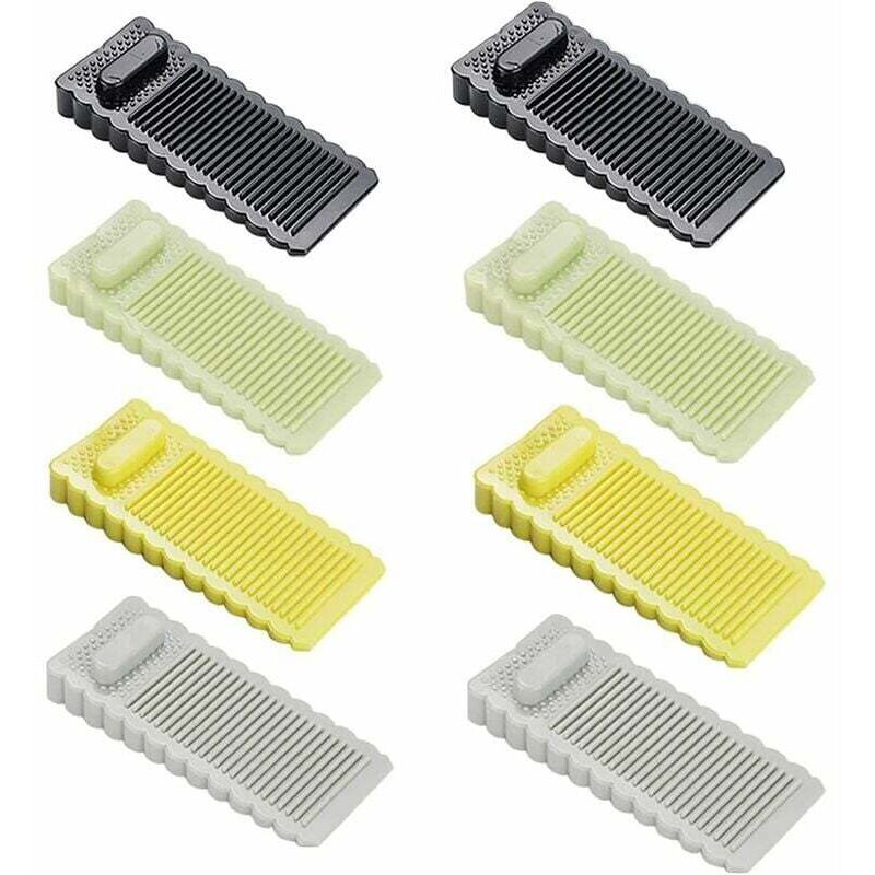 Materiale in gomma antiscivolo: il cuneo fermaporta è realizzato in gomma morbida, con design a strisce antiscivolo, morbido, resistente all'usura, anti-invecchiamento e può essere utilizzato a lungo. Più colori: questo il prodotto contiene 4 cunei per porte in diversi colori, tra cui nero, giallo, grigio e verde. La base cava antiscivolo li mantiene in posizione e offre una presa illimitata.,Strumenti perfetti per fissare le porte: che si tratti di piastrelle, cemento o pavimenti in legno, questi cunei per porte impediranno alla porta di muoversi. Proteggi anche il tuo pavimento dai graffi, solo un cuneo fermaporta è adatto per uno spazio < 1 cm (0,4 pollici) tra la porta e il pavimento. contrasta i forti venti e impedisce alla porta di bloccarsi automaticamente, ma impedisce anche che le dita del bambino rimangano intrappolate nella fessura della porta e si facciano male. Funziona con tutte le superfici del pavimento: adatto a tutti i pavimenti, come moquette, legno, piastrelle
