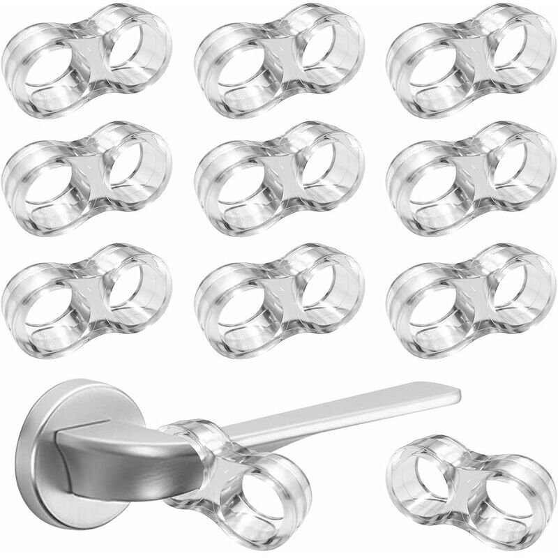 Sei preoccupato che il muro venga danneggiato da una forte raffica di vento Sei preoccupato che il rumore della porta che si chiude possa disturbare il tuo coinquilino o la tua famiglia Protettore Protezioni paraurti per maniglia della porta Protezioni fermaporta in PVC trasparente Smetti di danneggiare il muro! Materiale sicuro Il fermaporta è realizzato in PVC di alta qualità, atossico e insapore, adatto alla maggior parte delle maniglie delle porte. Ampia gamma di applicazioni Il diametro del foro piccolo è di 15 mm e il diametro del foro grande è di 18 mm, può essere facilmente allungato durante l'uso e si adatta alla maggior parte delle maniglie delle porte sul mercato. Riduce notevolmente il rumore Quando si apre la porta, il bullone del fermo della porta può impedire alla maniglia della porta di danneggiare il muro, ridurre il rumore della collisione e fornire un ambiente confortevole e tranquillo per te e la tua famiglia.