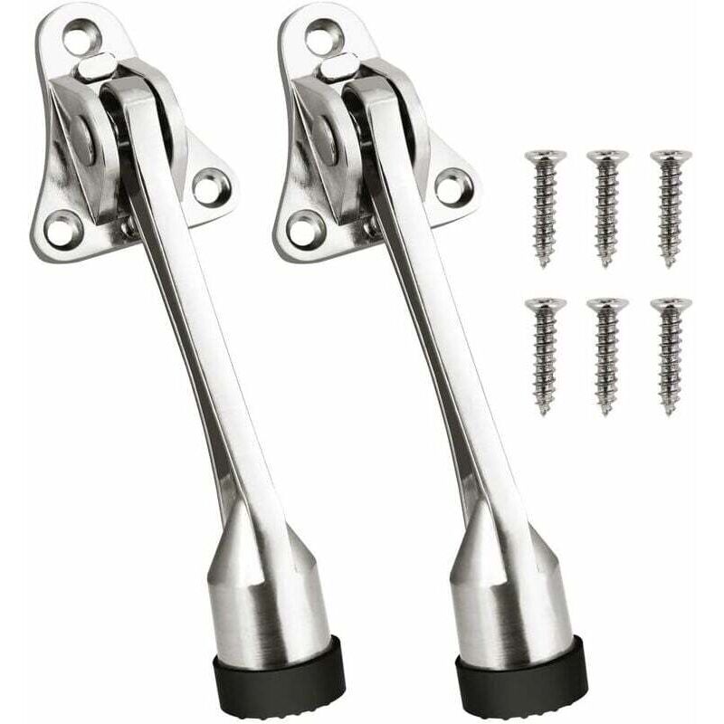 Protezione perfetta: il fermaporta impedisce alla porta di sbattere contro il muro e lasciare antiestetici graffi e ammaccature. Il tampone in gomma morbida della staffa della porta protegge il pavimento o il tappeto. Facile da usare: il tampone della porta può ridurre il rumore generato dall'oscillazione della porta, mentre la porta rimane aperta alla circolazione dell'aria. Il piedino di supporto può essere sollevato anche quando non viene utilizzato. Materiali di alta qualità: il fermaporta a parete regolabile è realizzato in lega di zinco di alta qualità, resistente, non facile da arrugginire e può essere riutilizzato per molto tempo. Facile da installare: include 6 viti per l'installazione. Basta installare il triangolo all'altezza corretta dietro la porta, quindi installare le viti per fissarlo