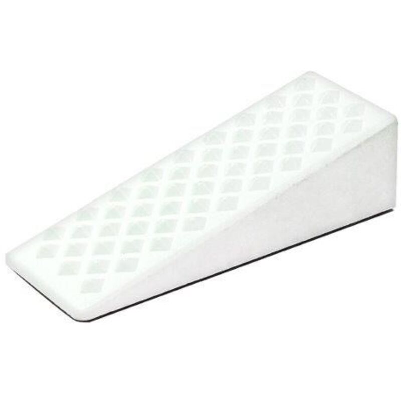Fermaporte adesivi a cuneo in plastica bianca. Confezione da 2 pezzi.