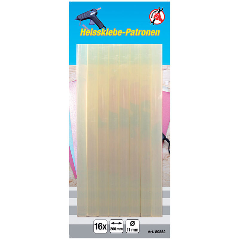 SET 16 PEZZI, STICK COLLA A CALDO, Ø 11 X 200 MM Articolo Descrizione BGS80852 16 PZ STICK COLLA A CALDO 11X200MM 1 Caratteristiche • lunghezza 200 mm• Ø 11 mm• colore bianco/trasparente• per articoli BGS 8050 e BGS 85800• peso 320 g