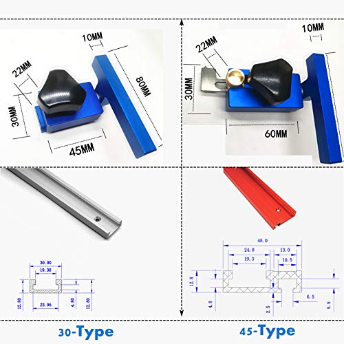 Fermo per Binario a T da 2 Pezzi, Blocco di Arresto per Pista obliqua Tipo 30 + 45, Base limitatore per Lavorazione del Legno su Binario a T con scanalatura a T Utensili manuali Fai-da-Te(Blu)