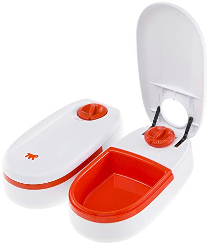 Somministra il cibo all'ora stabilita anche se non siete in casa, grazie al timer di cui è dotato per l'apertura programmabile fino a 44 h, realizzato in plastica robusta con piedini antiscivolo, completo di ciotola estraibile e lavabile