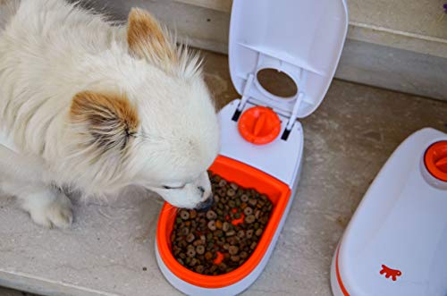 Distributore automatico di cibo per cani di piccola taglia e gatti, capacità 0,4 Litri, adatto per cibo secco, dimensioni complessive: 13,2 x 23,7 x h 7,5 cm