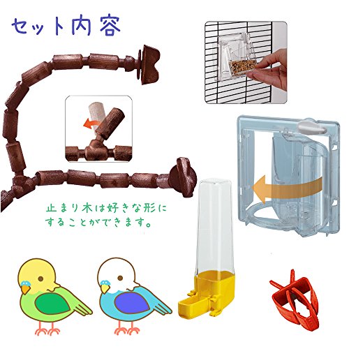 Accessori inclusi: mangiatoie girevoli Brava, beverino e pinza porta verdura, posatoi in plastica modulari e flessibili