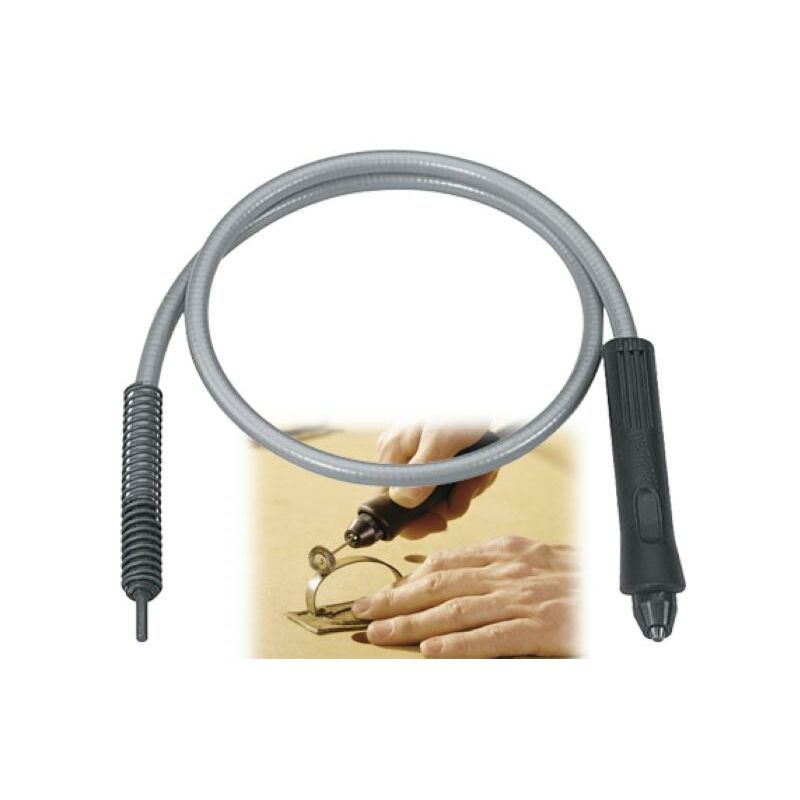 Albero flessibile per trapano con 2 cuscinetti a sfera, protezione antipiega, lunghezza 130 cm. - codolo 6 mm., corsa destrosa, max 3.500 giri/min. In dotazione mandrino autoserrante 6 mm.