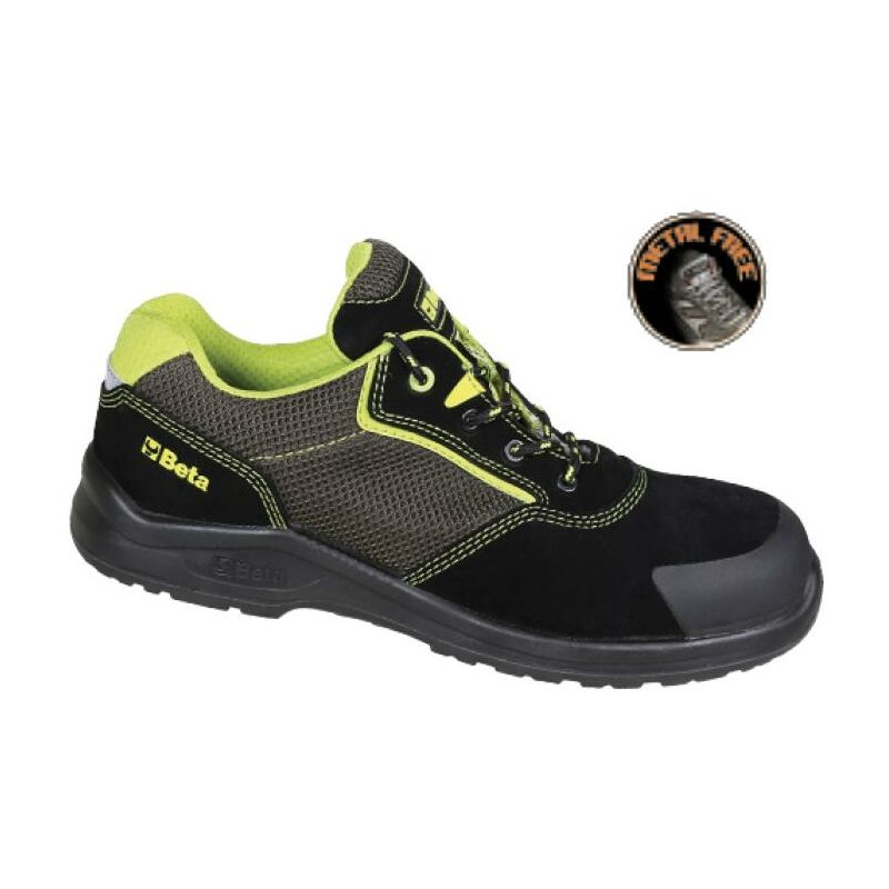 Tomaia pelle scamosciata con inserti in mesh ad alta traspirazione e rinforzo antiabrasione nella zona del puntale, suola in poliuretano monodensita', puntale materiale polimerico, resistenza 200 Joule, antiperforazione in fibra composita (Metal Free senza metalli), con trattamenti ceramici, sottopiede anatomico in carbon. Norma EN 20345 SP1 SRC (resistente alla perforazione della suola, resistente allo scivolamento ceramica+detergente - acciaio+glicerina)