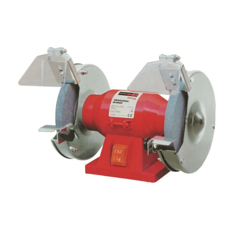 Scocca motore rinforzata, parti metalliche a massa, interruttore bipolare, supporti calvanizzati regolabili, cuffie proteggimole in acciaio, 2 mole di diversa grana, 2950 giri/min. - Watt 150 - mole 150 mm.