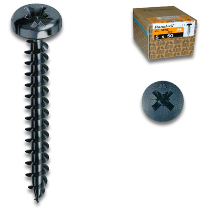 Testa cilindrica - Taglio PZ Forte pressione di serraggio Trattamento galvanico zincatura nera Utilizzo fissaggio ferramenta per infissi su truciolato e legno naturale