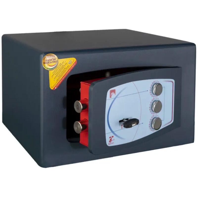 Cassaforte a mobile Technomax serie “Gold moby diplo” modello GMD/3 Serratura di alta sicurezza di ultima generazione, con 8 leve asimmetriche ed indipendenti, certificata UNI EN 1300. Si basa sull'utilizzo di nuove leve antipicking oscillanti e mentonnet a profilo speciale che oppongono una eccezionale resistenza agli attacchi portati utilizzando gli ultimi sofisticati sistemi di manipolazione con l'uso di speciali grimaldelli Chiave a doppia mappa con profilo speciale duplicabile con carta di proprietà, per impedire la duplicazione non autorizzata delle chiavi Blocco combinatore a 3 volantini da 20 posizioni ciascuno Estrazione della chiave impossibile a catenacci rientrati Catenacci in acciaio nichelato, girevoli, del Ø di 22 mm Protezione al meccanismo della serratura con piastra in acciaio al manganese Catenacci orizzontali e verticali superiori protetti da una piastra in acciaio al manganese dello spessore di 3 mm., posizionata in obliquo al fine di ottenere la massima