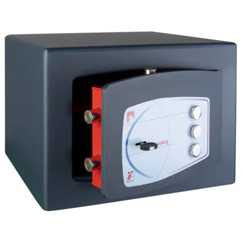 Cassaforte a mobile Technomax serie “Gold moby diplo” modello GMD/4 Serratura di alta sicurezza di ultima generazione, con 8 leve asimmetriche ed indipendenti, certificata UNI EN 1300. Si basa sull'utilizzo di nuove leve antipicking oscillanti e mentonnet a profilo speciale che oppongono una eccezionale resistenza agli attacchi portati utilizzando gli ultimi sofisticati sistemi di manipolazione con l'uso di speciali grimaldelli Chiave a doppia mappa con profilo speciale duplicabile con carta di proprietà, per impedire la duplicazione non autorizzata delle chiavi Blocco combinatore a 3 volantini da 20 posizioni ciascuno Estrazione della chiave impossibile a catenacci rientrati Catenacci in acciaio nichelato, girevoli, del Ø di 22 mm Protezione al meccanismo della serratura con piastra in acciaio al manganese Catenacci orizzontali e verticali superiori protetti da una piastra in acciaio al manganese dello spessore di 3 mm., posizionata in obliquo al fine di ottenere la massima