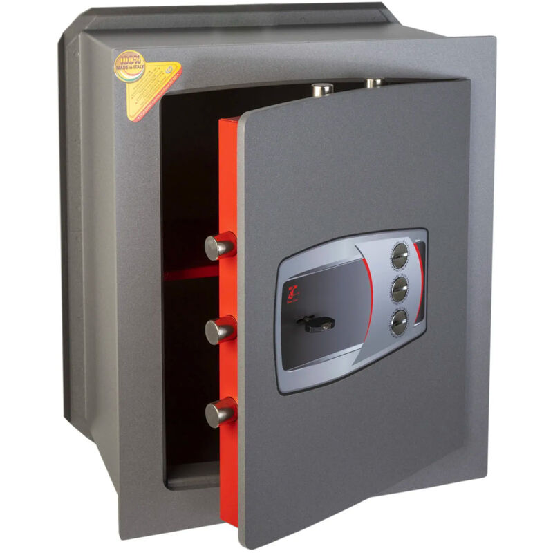 Cassaforte a muro Technomax della serie “Technofort Diplo”, modello DD/7L Cassaforte con apertura con chiave a doppia mappa + combinatore a 3 volantini Caratteristiche tecniche: Serratura di alta sicurezza di ultima generazione, con 8 leve asimmetriche ed indipendenti, certificata UNI EN 1300, si basa sull'utilizzo di nuove leve antipicking oscillanti e mentonnet a profilo speciale che oppongono una eccezionale resistenza agli attacchi portati utilizzando gli ultimi sofisticati sistemi di manipolazione con l'uso di speciali grimaldelli Chiave a doppia mappa con profilo speciale duplicabile con carta di proprietà, per impedire la duplicazione non autorizzata delle chiavi Blocco combinatore a 3 volantini incassati da 20 posizioni ciascuno. Estrazione della chiave impossibile a catenacci rientrati Catenacci in acciaio nichelato, girevoli, del diametro di 22 mm Protezione al meccanismo della serratura con piastra in acciaio al manganese Speciali battute della porta per resistere più a
