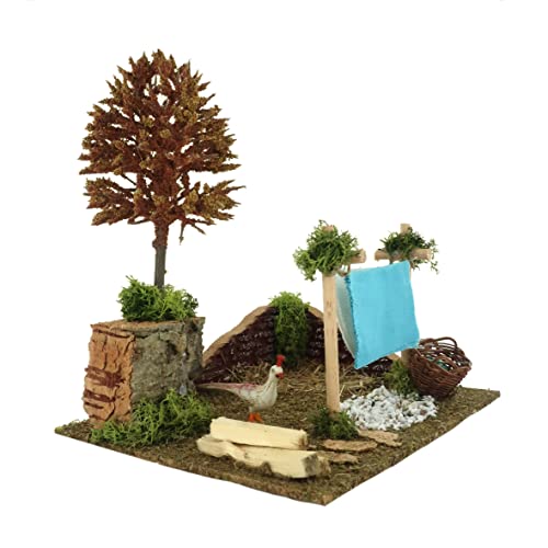 Ferrari & Arrighetti Angolo di Campagna con Panni Stesi, Decorazione per Presepe, Legno/Plastica, 19 x 15 x 15 Cm