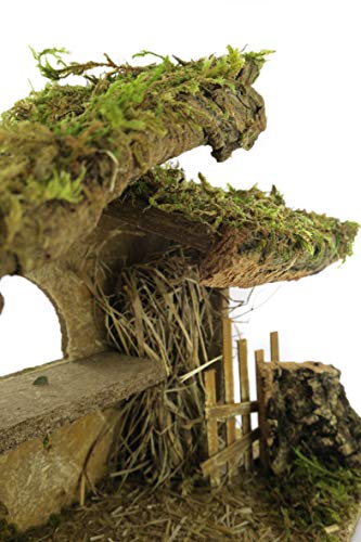 Ferrari & Arrighetti Capanna Vuota per Presepe, con Steccati e Paglia, per Statuine da 10 Centimetri Non Incluse, Legno, 36x16x27 Centimetri
